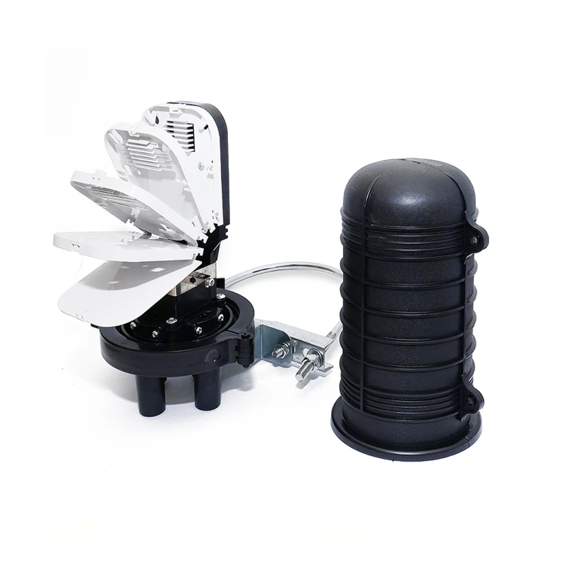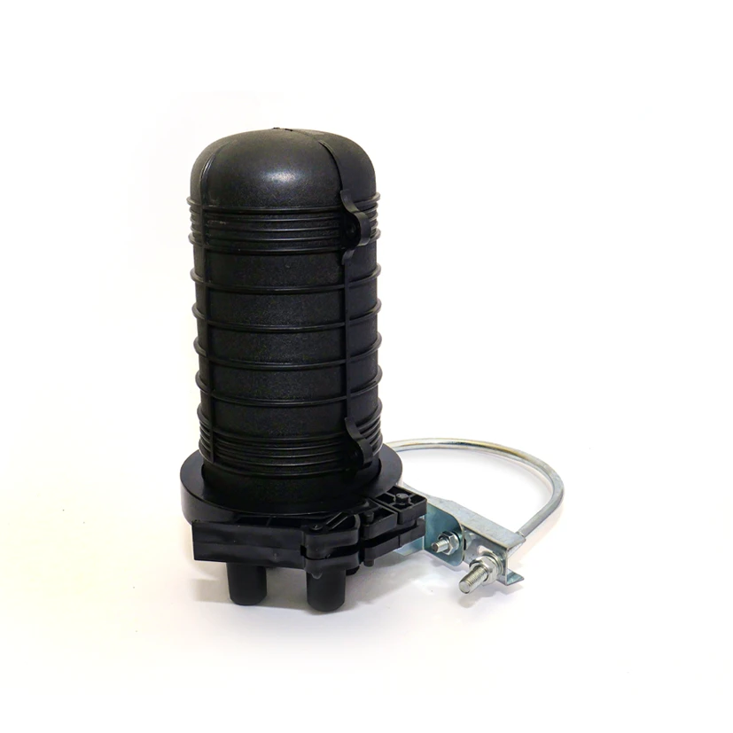 A dome-shaped fiber splice enclosure with radial cable entry ports, ideal for branching and distribution.